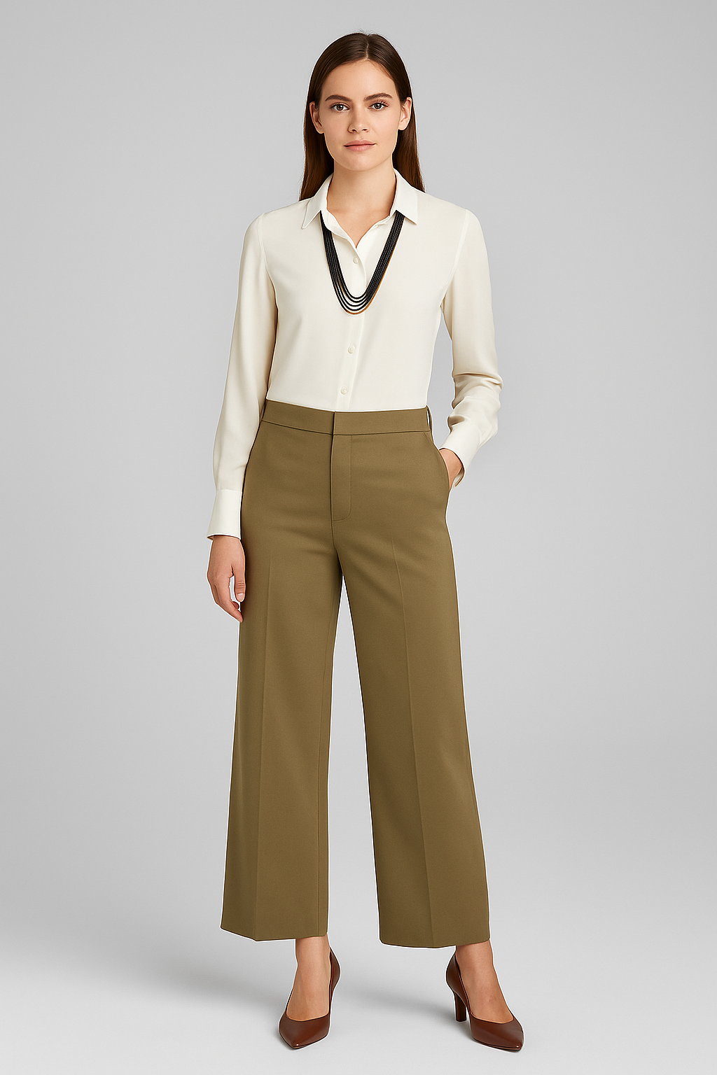 Pairs beautifully with silk blouses, blazers, knitwear, or minimalist gowns.